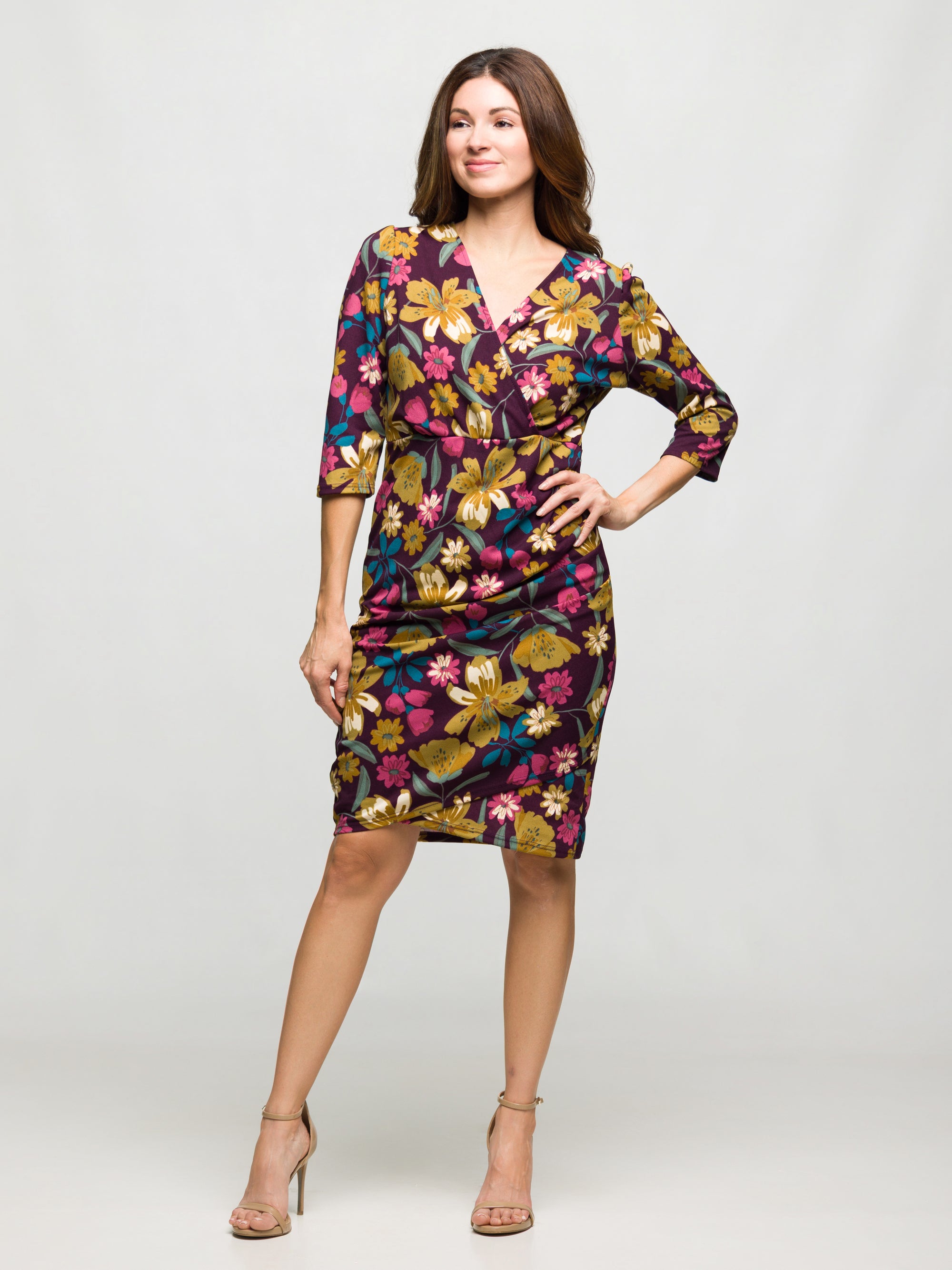 24seven Comfort Apparel Floral Print Faux Wrap Dress