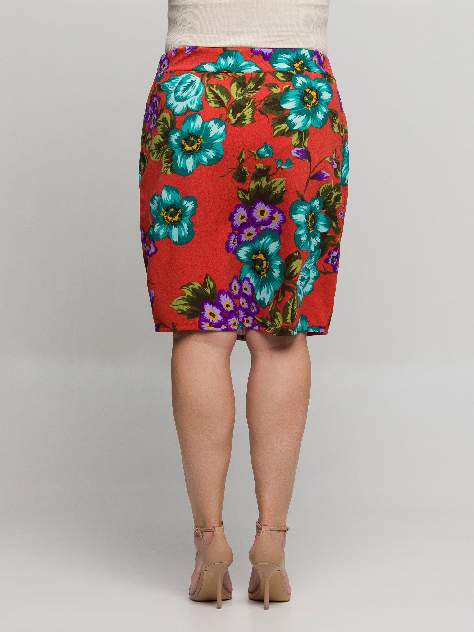24seven Comfort Apparel Plus Size Floral Print Knee Length Pencil Skirt