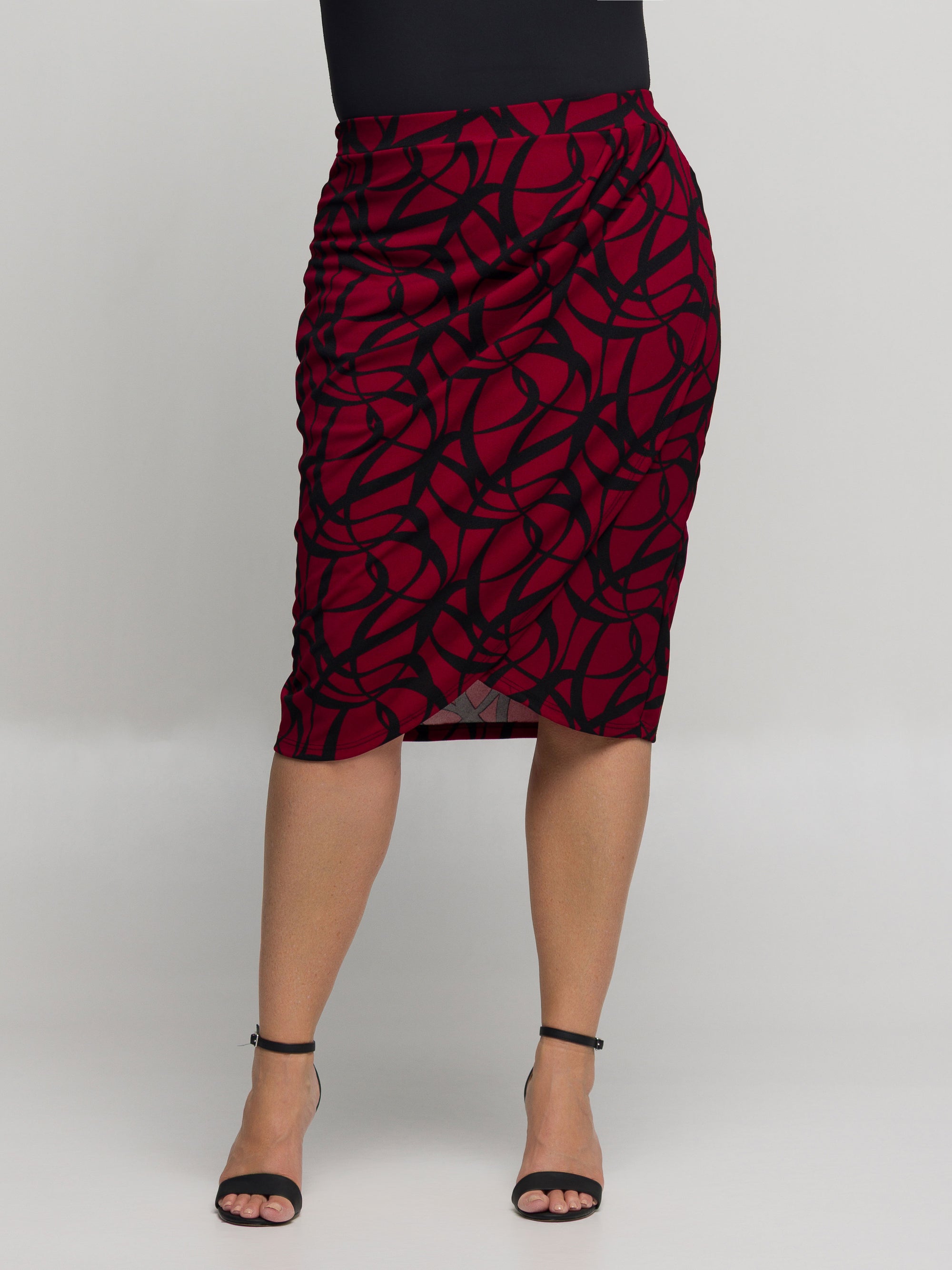 24seven Comfort Apparel Plus Size Burgundy Print Ruched Knee Length Skirt